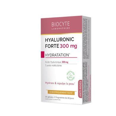 Hyaluronic Forte 300 мг – дієтична добавка у капсулах, створена для підтримки зволоженості та еластичності шкіри зсередини. Гіалуронова кислота, яка входить до складу продукту, забезпечує інтенсивне зволоження, допомагає утримувати вологу в клітинах шкіри та покращує її пружність. Регулярний прийом добавки сприяє зменшенню видимих ознак старіння та підтримує здоровий, доглянутий вигляд обличчя.